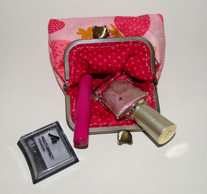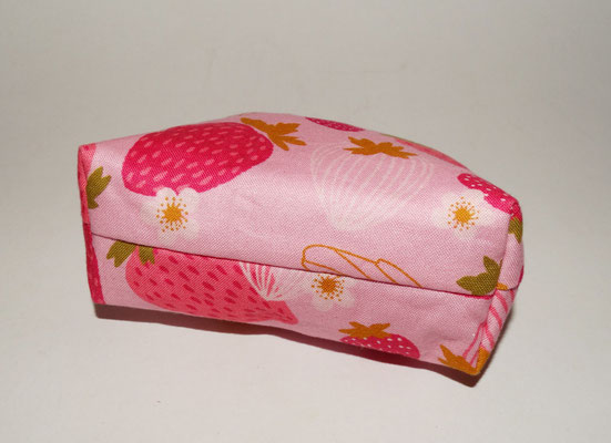 • Entièrement doublé, le tissu extérieur est rose avec des fraises